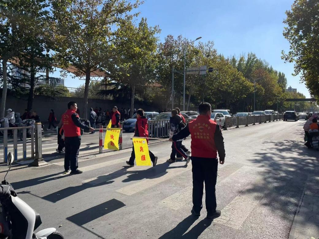 勾当进程中,自愿者们在下学岑岭时段,离开黉舍门前路段,手持“执勤”交通指导旗,保护交通次序,劝止乱停乱放车辆,护送师生宁静通行。